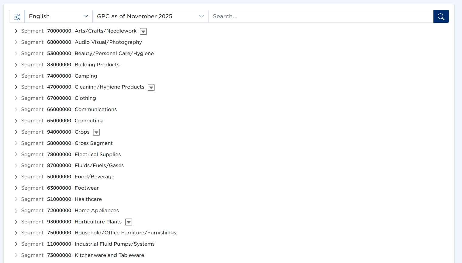 - ابحث عن تصنيف GPC المناسب وأدخل كود الوحدة المبدوء بـ 1000